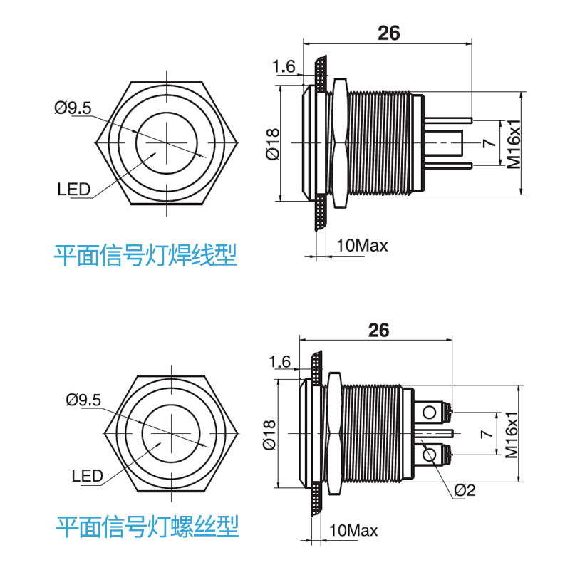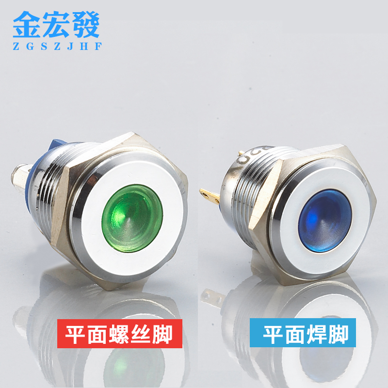 16MM POWER INDICATOR METAL LED ULTRA-thin WARNING light Waterproof IP67 PLANE CONCAVE screw J16-170