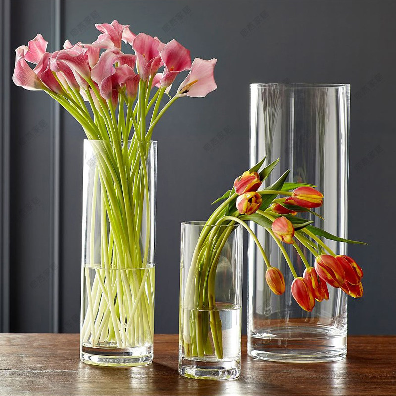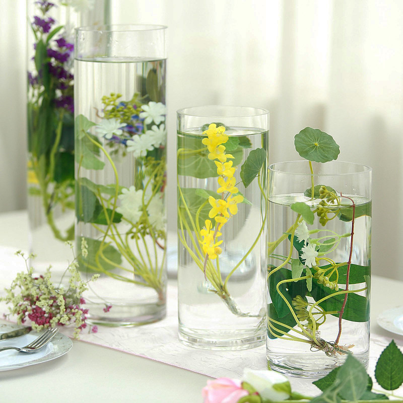 Vase Ornament Living Room Flower Arrangement Transparent Glass Rich Bamboo Round Straight Dining Table Vase Road Leading Simple Floor-to-ceiling Flower Vessel