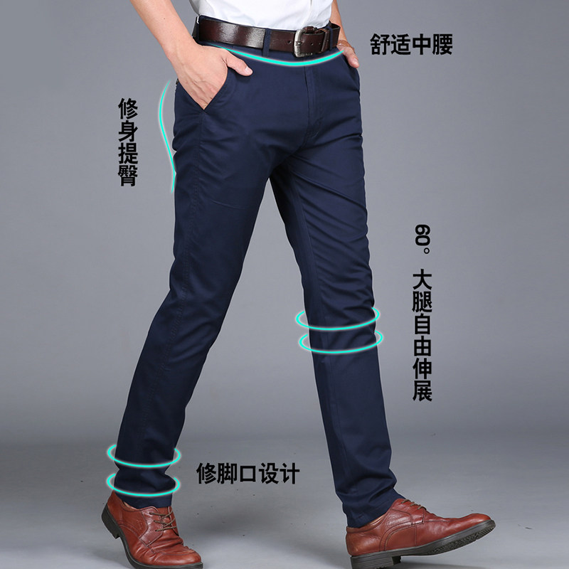 Summer business casual pants men's youth slim Korean version of the trend pants men's cotton men's pants straight black pants