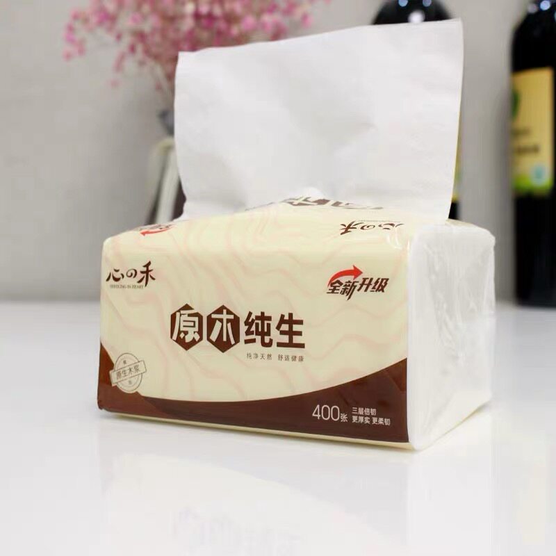 Xinhe logs 400 sheets of removable tissue paper napkins sanitary facial tissue family packing FCL 24 packs for household use