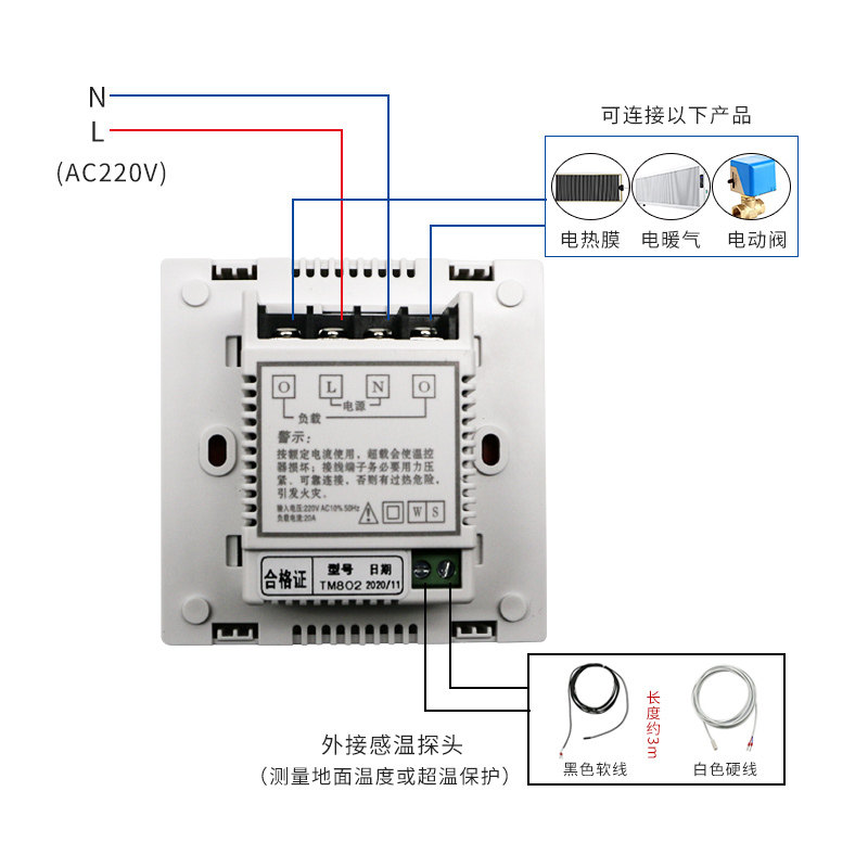 TOMSEN802 secretly installed timing program design temperature controller electro-thermal film heating cable electric heating kang control temperature switch