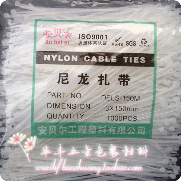 Self-lock type 3 * 150 nylon tie 600 strips of plastic bound wire harness cord with fixed buckle strap white