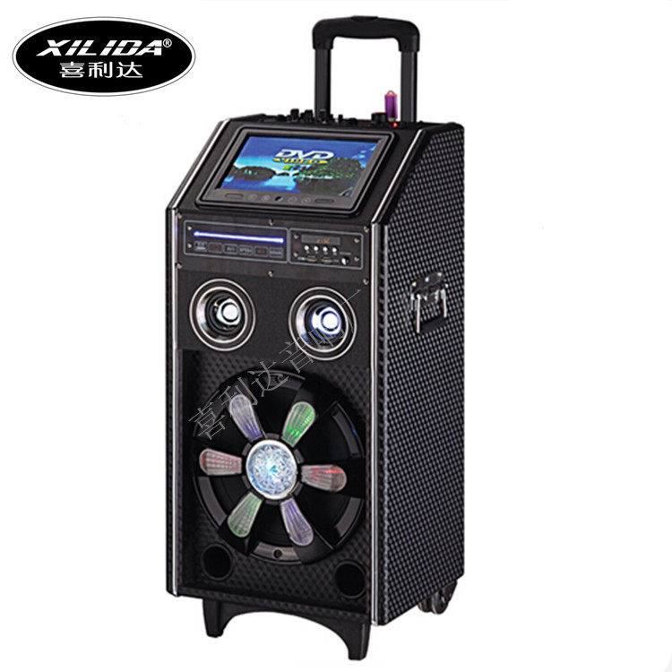 Xilida outdoor multi-functional mobile trolley battery audio square event stage speaker DVD9 inch display