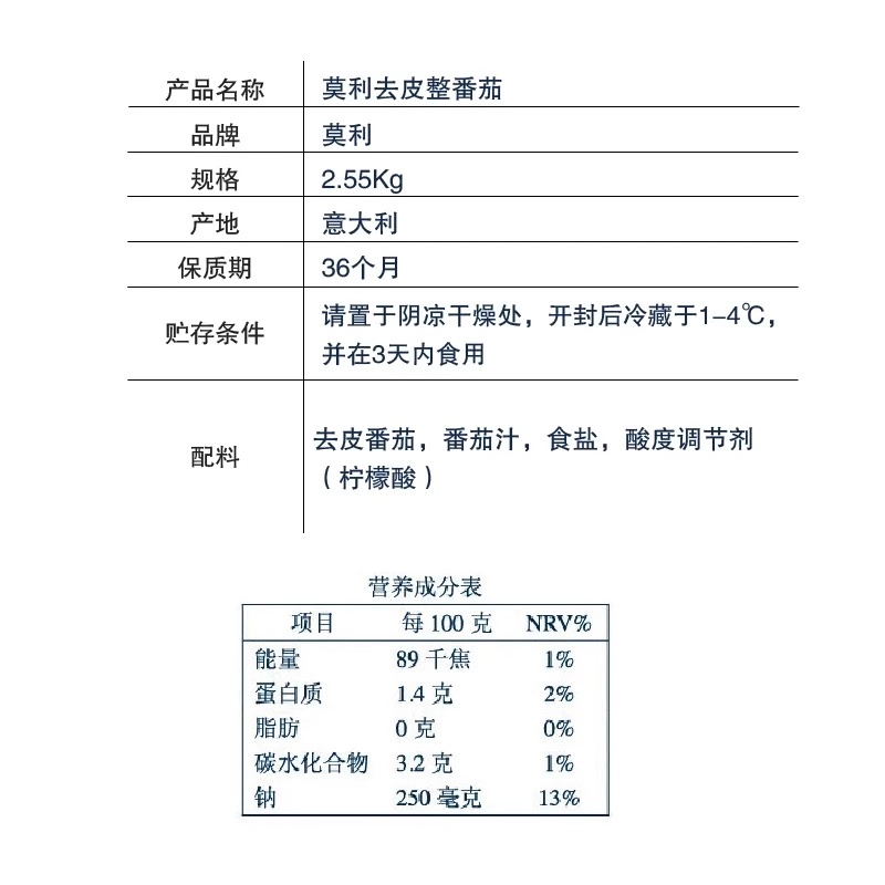 Original clothing imported Italy Molly peeled eggplant peeled whole tomato 2 55kg Western meal whole box Jiang Zhejiang Shanghai