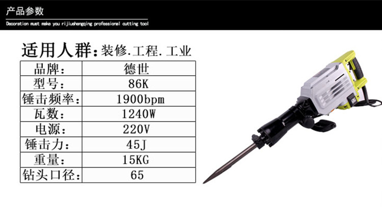 Dessei DESHI 1240W Professional electric pick hammer drill chisel multifunctional electric pickaxe Demaster electric hammer drill rig MOD-DS86