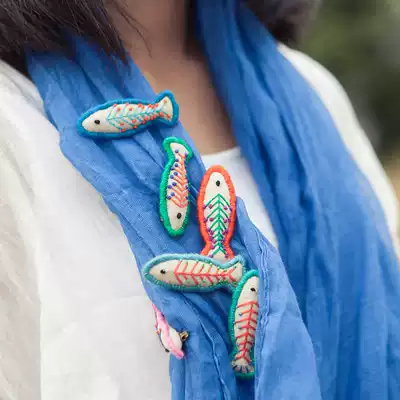 Small fish original handmade embroidery brooch pin personalized wild ornaments literary fabric art silk female national king hand creation