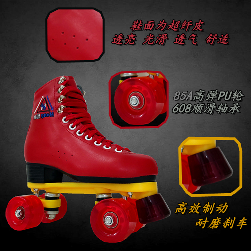 New Skates Roller Skates Double Row Roller Skates Four Wheels Pattern Adult Red Cotton Rollers