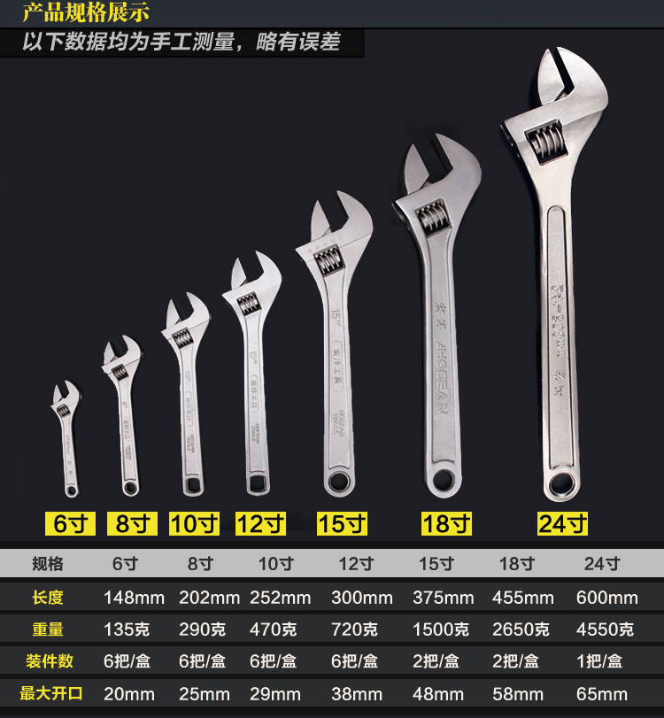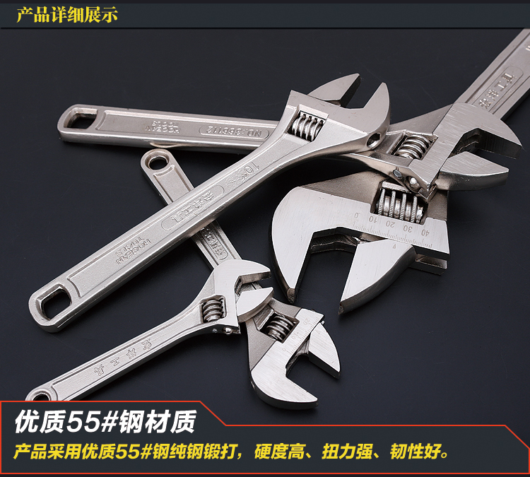 Pure Steel Active Wrench Live Mouth High Carbon Steel American Adjustable Wrench Forged opening wrench 8101215 inch scale