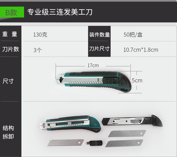 Heavy duty multi-connected industrial grade professional beauty work knife anti-shaking cut film knife high carbon steel face value plastic wall paper knife