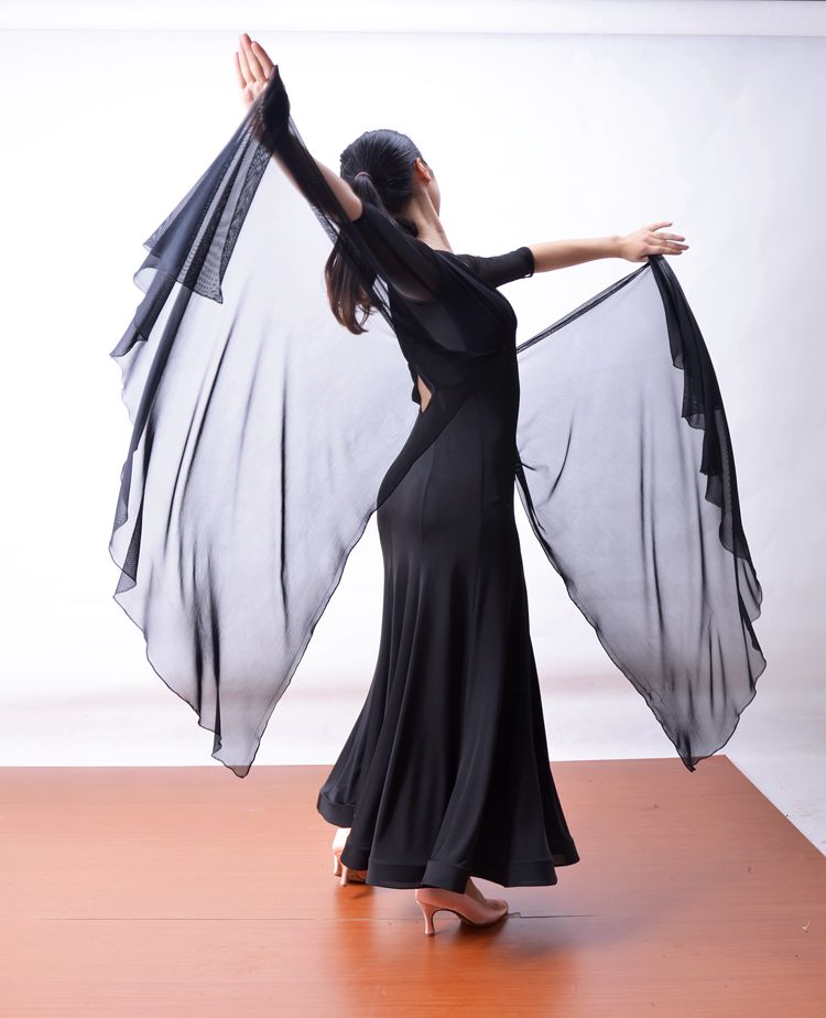 Exotic Dance Hot Selling National Mark Dance Large Floating Yarn Cross Dew Back Mid Sleeve Practice Performance Morden Ocean Dress W13016