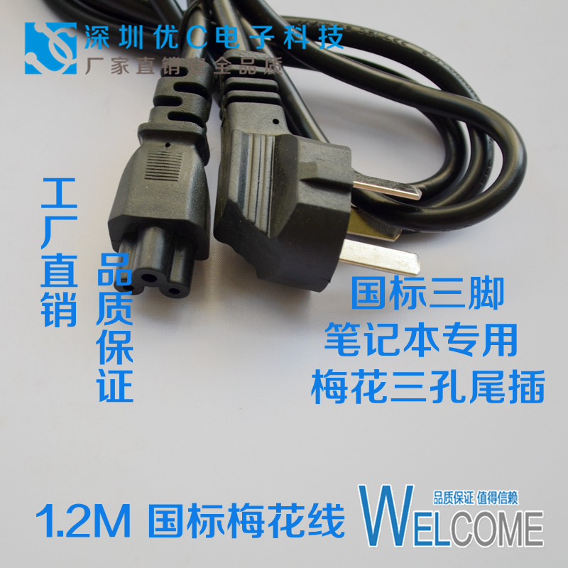 Factory direct selling wire core thick 1 2 meters Lenovo HP Asus notebook computer power cord three-hole national standard plum blossom wire
