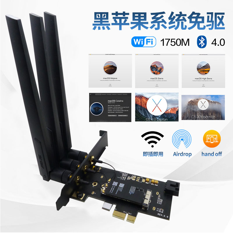 BCM4322 desktop computer without Bluetooth BCM943224BT2 Apple card with Bluetooth BCM943602CS Humaster 86U antenna BCM94360