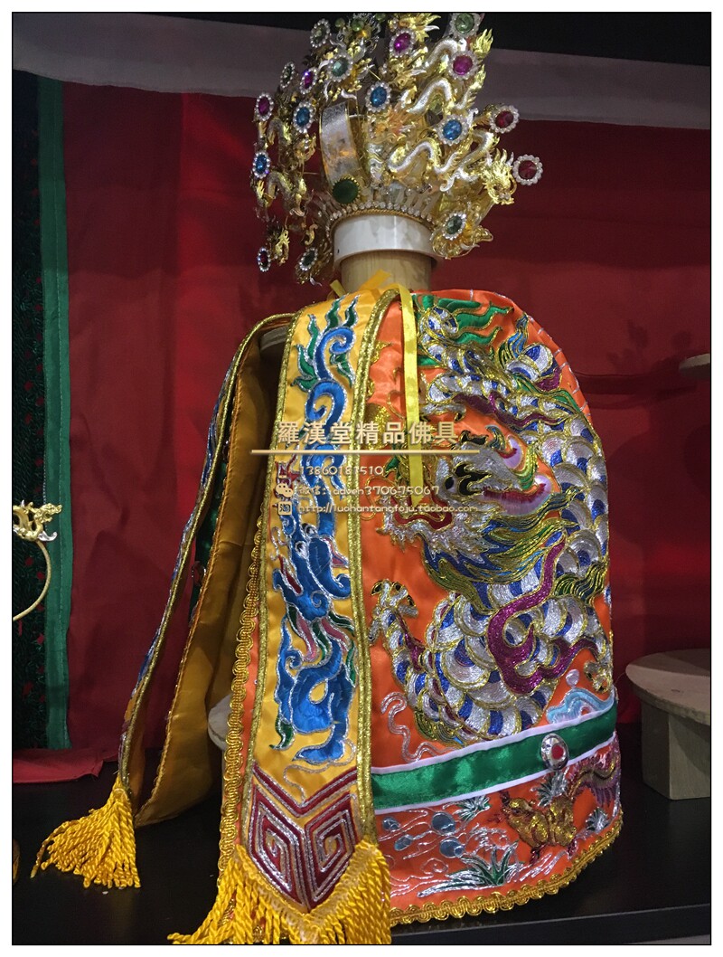 Quality Buddha Statue of the Divine Buddha Patron Saint of the Divine Clothing God of Taiwan Handmade Embroidery Dragon Robe Lotus Flower Clown Religious Craft Gift Hem