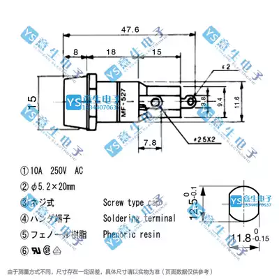 MF527 fuse holder 10A250V 5 * 20mm imported Bakelite seat panel installation UL VDE
