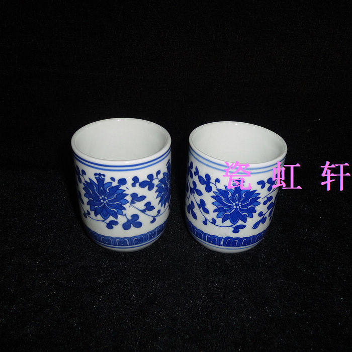 Jingdezhen Cultural Revolution Porcelain Factory Goods ceramic Qinghua Tangle Branches Lotus Straight Barrel Holding Cup Pu-erh Tea Cup Flush Drilling Special Price