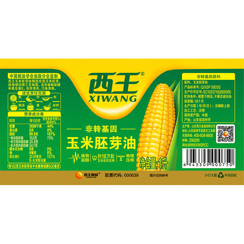 West King Corn Germ Oil Corn Oil Pressed Edible Oil 1L Non-genetically modified phytosterols