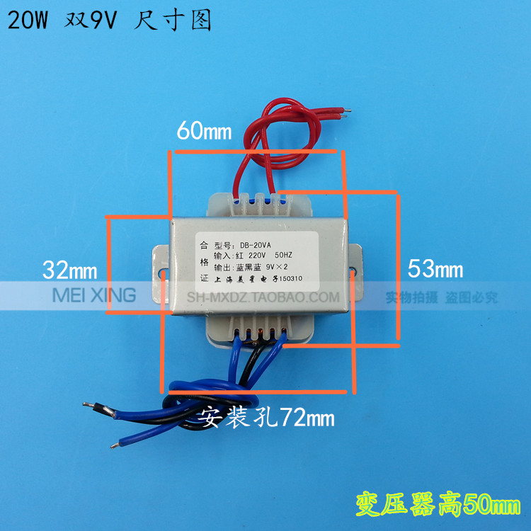 EI type transformer 220V to AC9Vtimes 2 dual 9V power amplifier transformer AC 9V 20W VA 1A