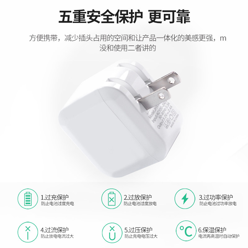 With white charging data cable with black charging data cable Dual USB charging cube charger