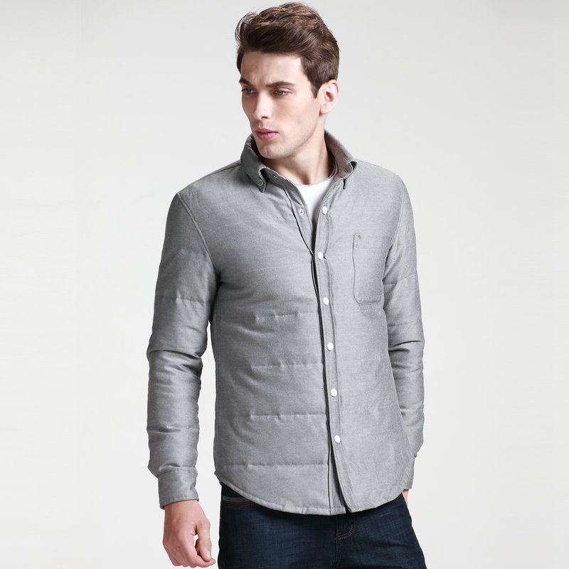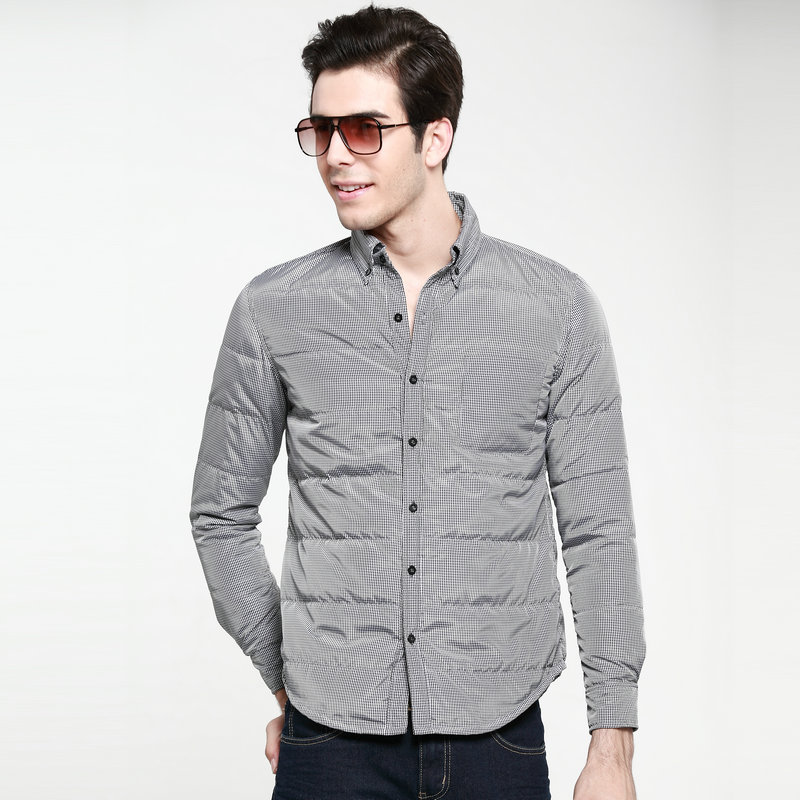 Down-En Winter Men's Checkered Dads Dress Down Clothes Shirts Manmade Long Sleeves Light Thin Trend Jacket Liner Underwear