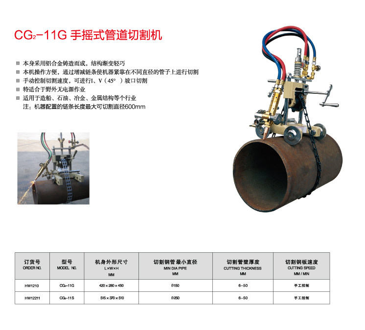 CG2-11G Hand rocking pipe cutting chain strip style pipe cutting machine Flame Piping Slop Machine Wawei Congenique