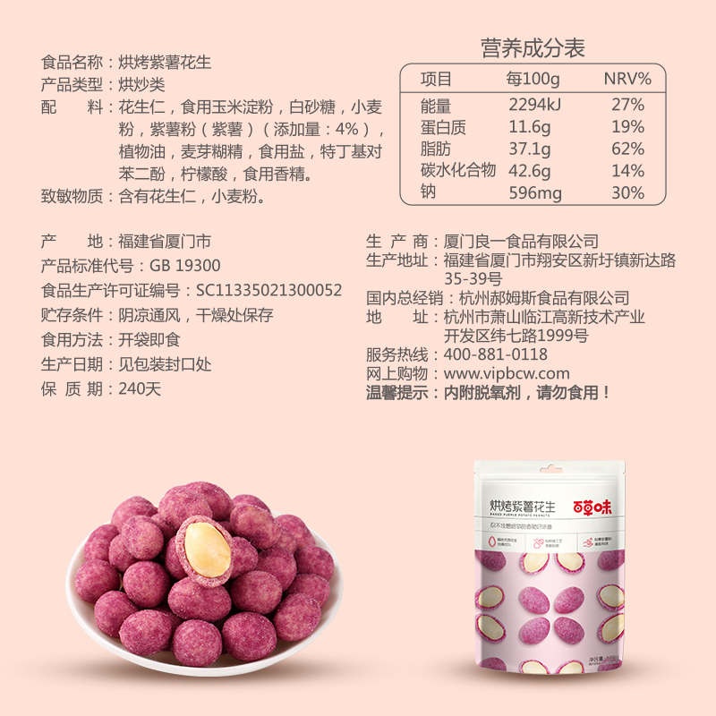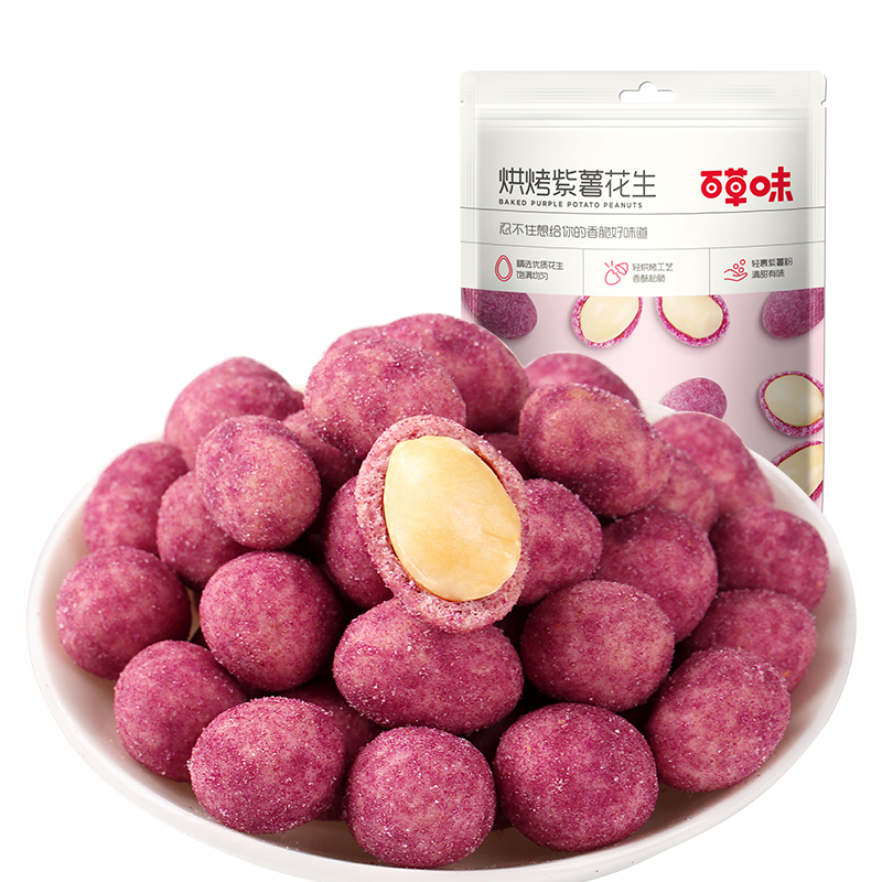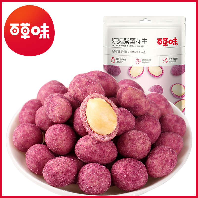 (Baicao flavor-Purple potato peanuts 128g)Fried purple potato with shell peanut snack multi-flavor cooked peanuts