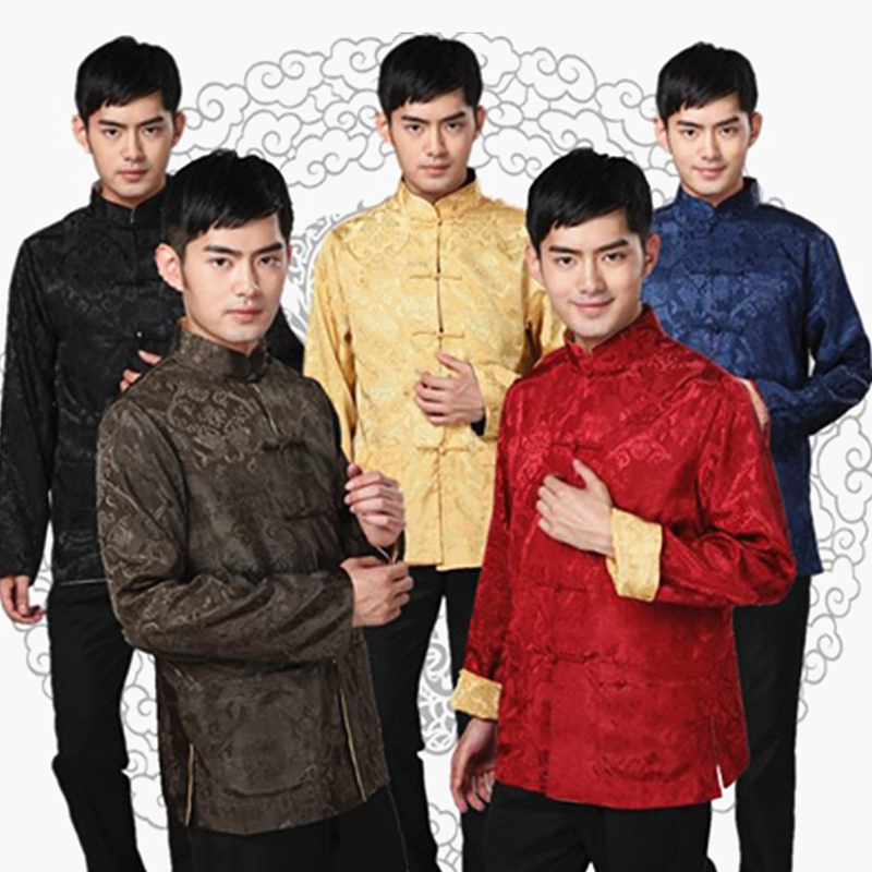 Wear a Tang men's long-sleeved top on both sides Antique Chinese style jacket Loose middle-aged and elderly Hanfu autumn and winter Taisi