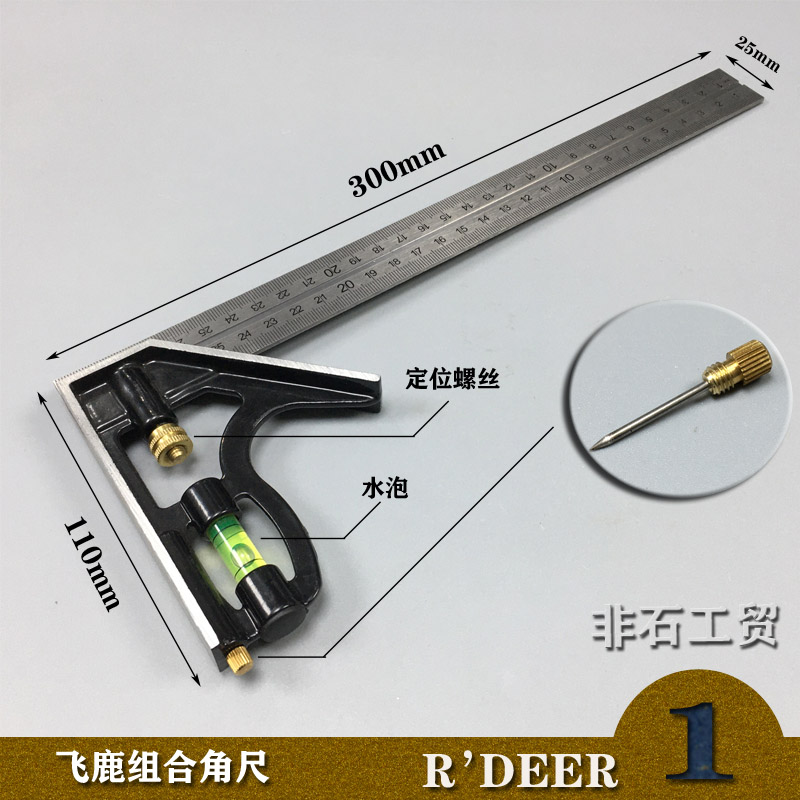 Flying deer combination angle ruler stainless steel mobile multi-function activity universal adjustment ruler 300mm angle ruler RCS-300