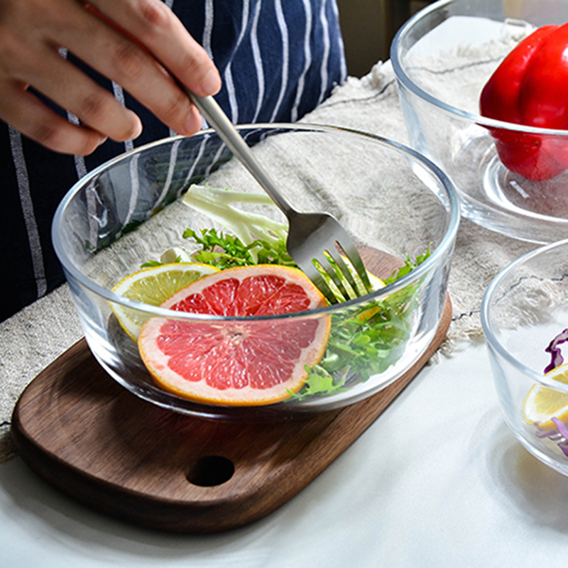 Transparent Tempered Glass Round Dessert Salad Soup Bowl Home Day Style Dining Bowl Large Heat Resistant Foam Noodle Bowl microwave
