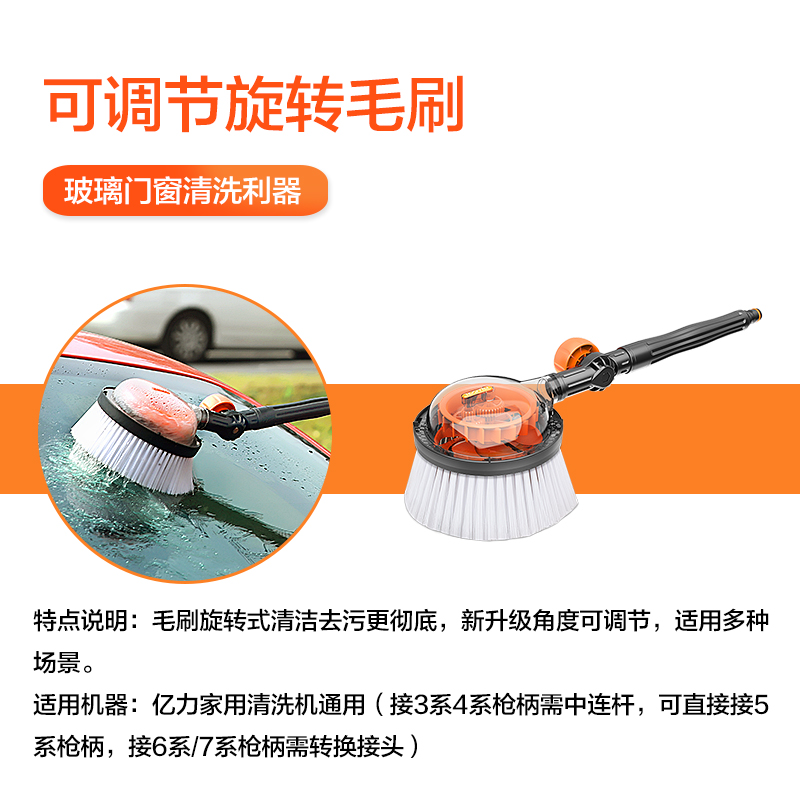 New upgrade adjustable rotating brush Rotating brush metal telescopic rod car wash brush through water Long brush through water sponge brush through water hub brush Lotus nozzle splash cover through water cleaning brush plate adjustable