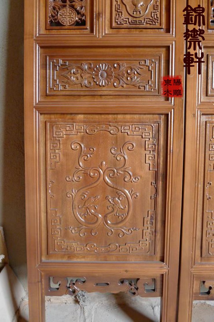 Dongyang wood carving solid wood folding screen Antique lattice partition entrance hollow background wall Floor-to-ceiling cover seat screen