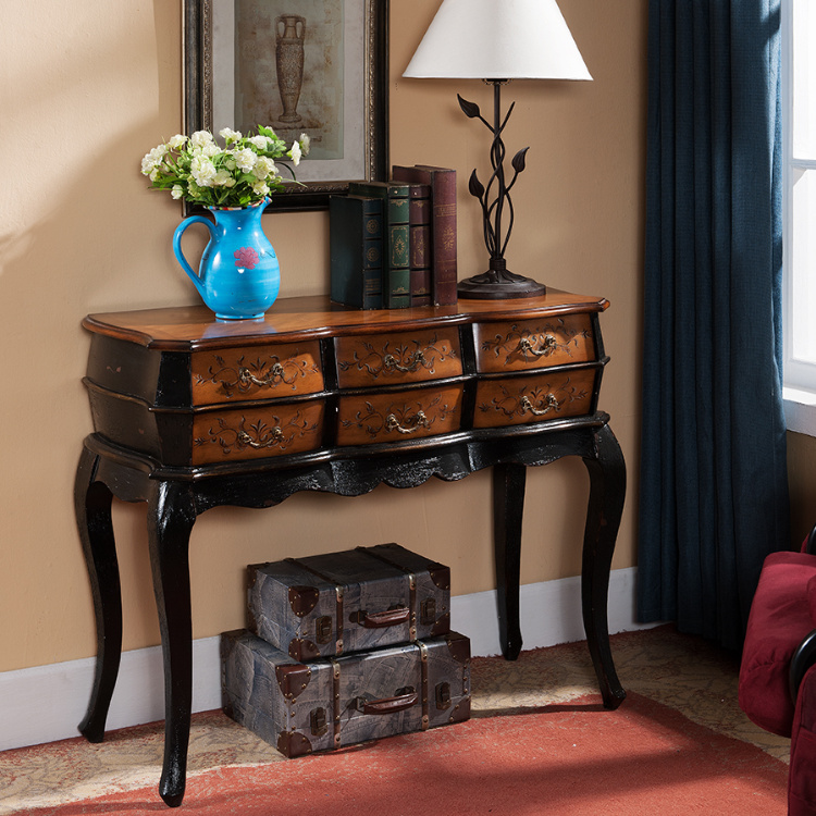 Manufacturer Direct sales Solid wood Xuanguan Table Foreign Trade European-style French style neoclassical furniture Painted Eurostyle Makeup side table desk