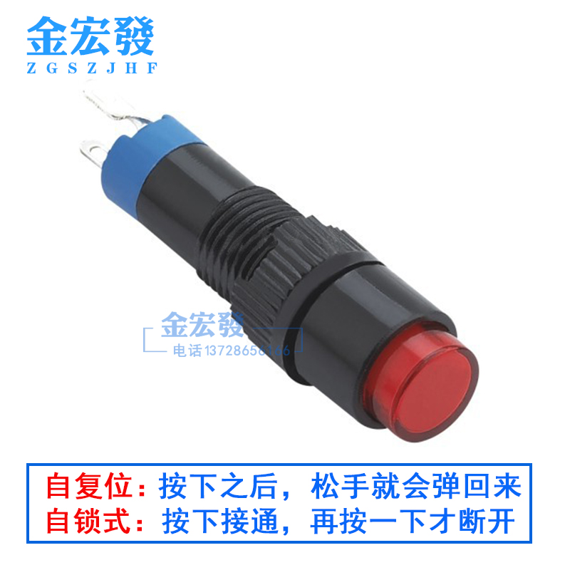 8MM gold macro plastic button switch self-reset self-locking with LED light round K8-271 small micro power supply