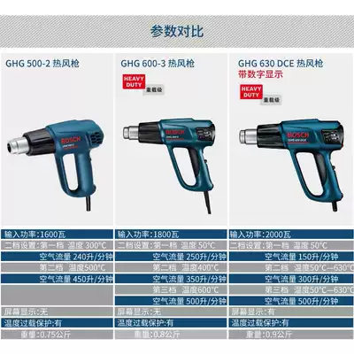 GHG16-50 two-speed temperature adjustment 1600 watts GHG18-60 three-speed temperature adjustment 1800 watts GHG20-63 three gears with digital 2000 Watts GHG630DC