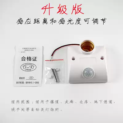 Infrared induction switch lamp holder Induction delay switch corridor can be connected to LED energy-saving lamp head E27 screw 220V