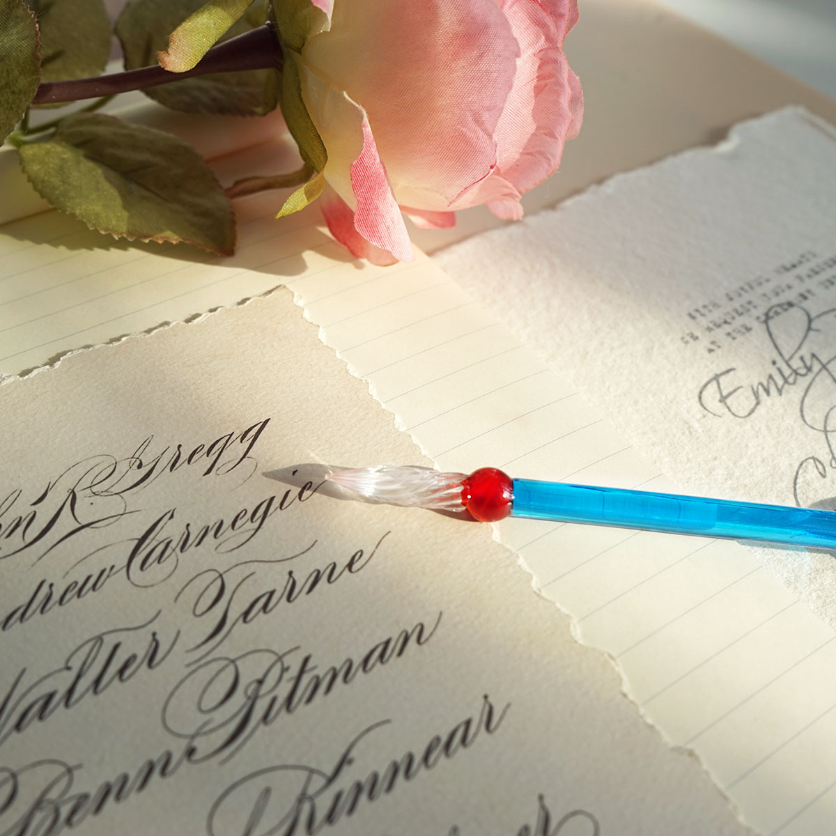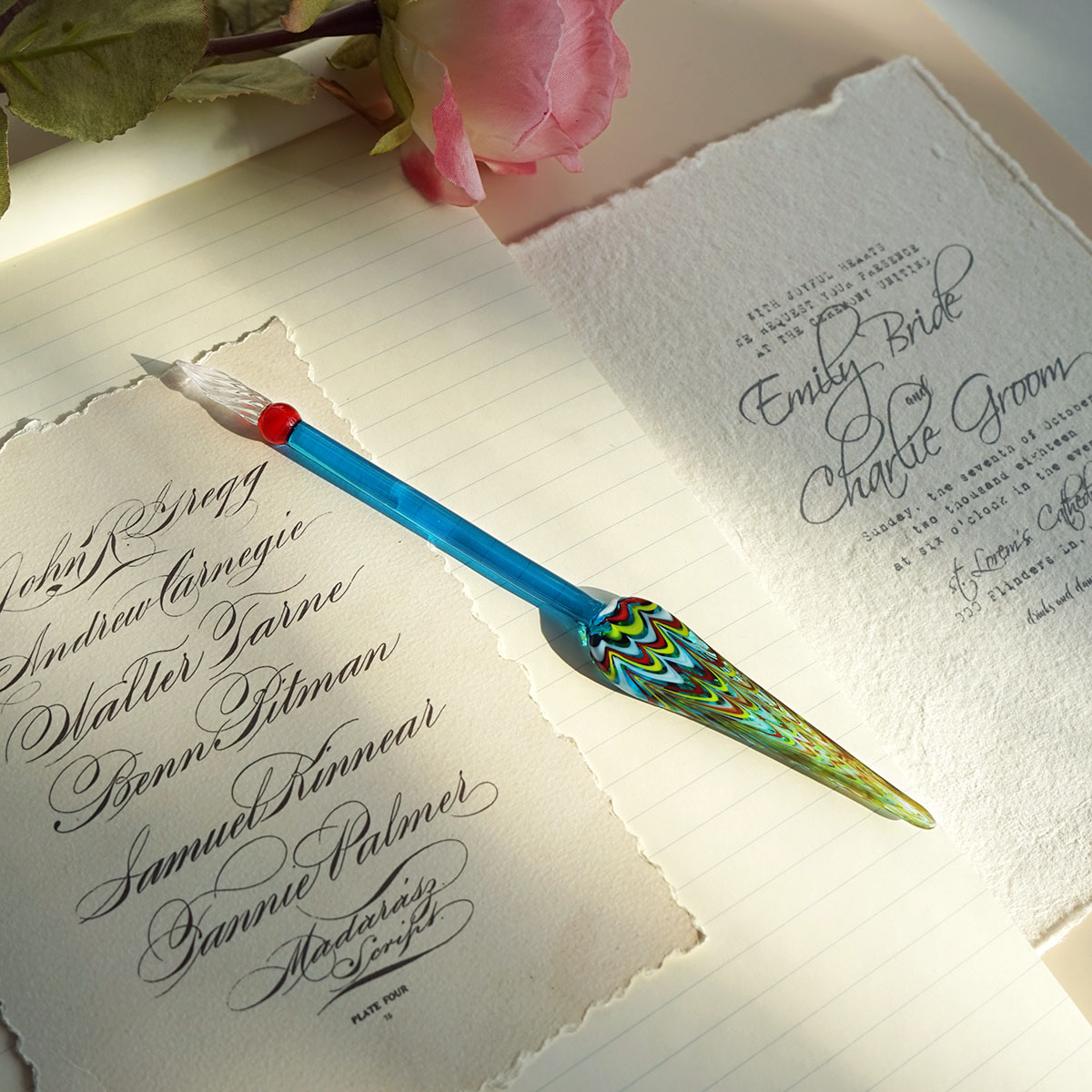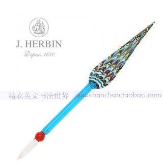 French imports J Herbin traditional retro handmade glass pen dip with fine peacock feathers