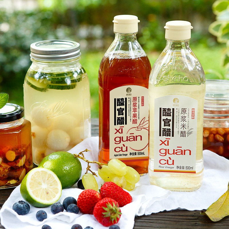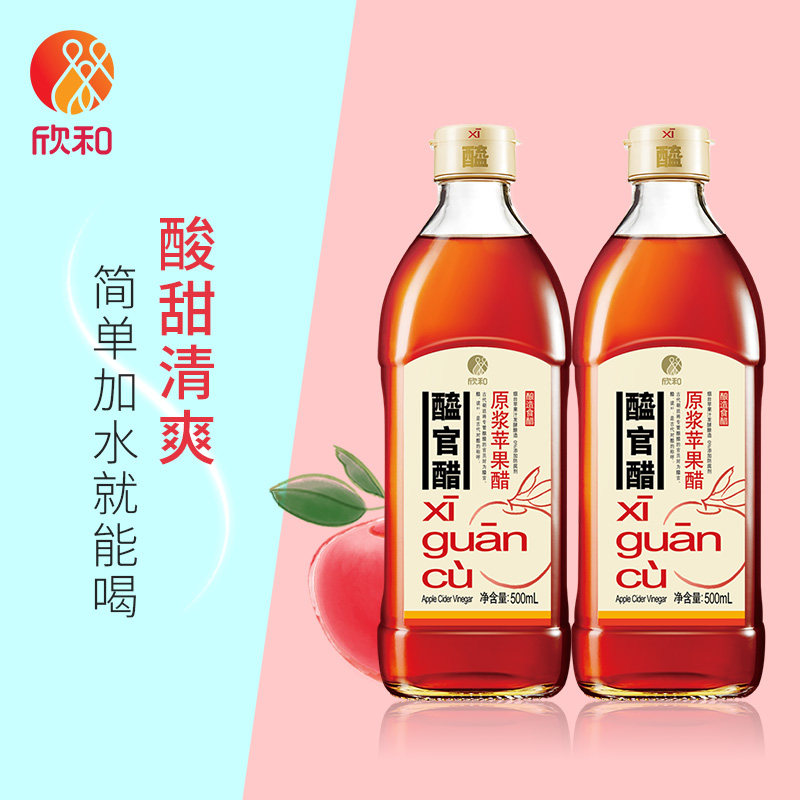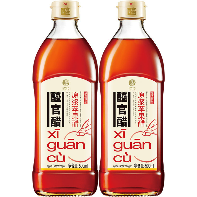 Xin and Official Vinegar Raw Berries Apple Vinegar 500ml * 2 Bottles Original Vinegar Fruit Vinegar Pure Apple Juice Fermented 0 Fat