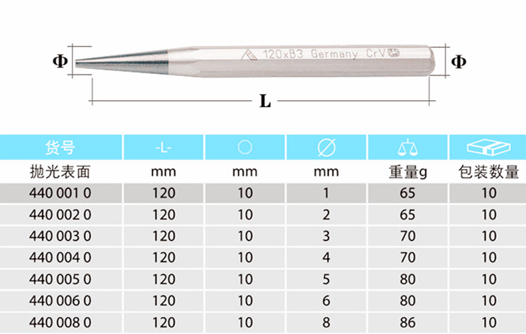 10mm (length 120mm) 8mm (length 120mm) 6mm (length 120mm) 5mm (length 120mm) 4mm (length 120mm