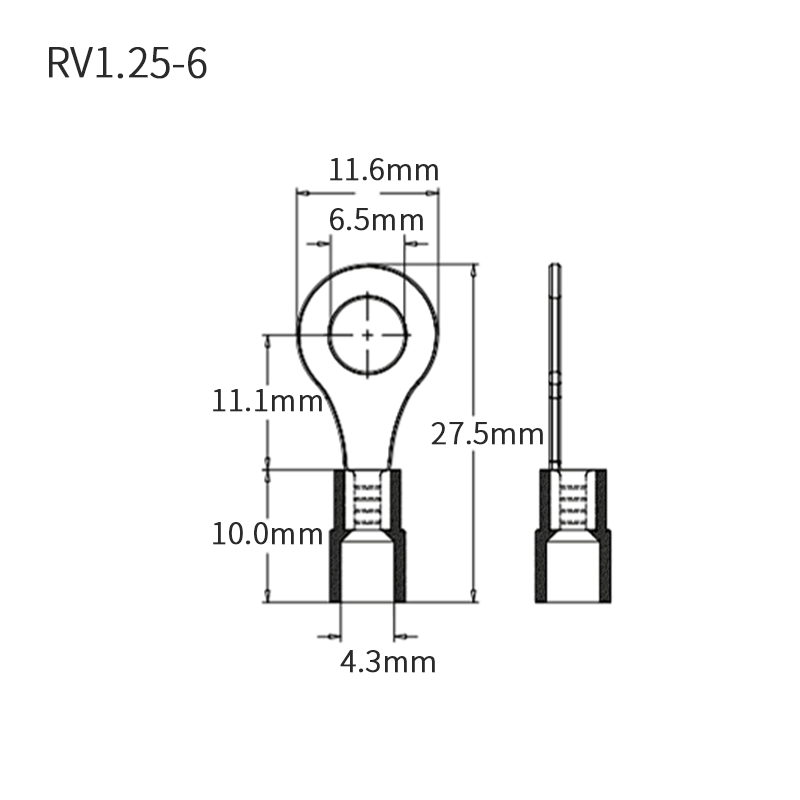 RV1 25-6 round pre-insulated terminals O-type cold-pressed terminals Copper terminals 0 5 thick brass 1000pcs