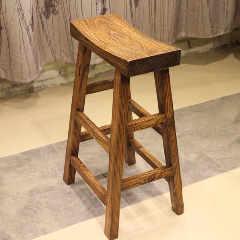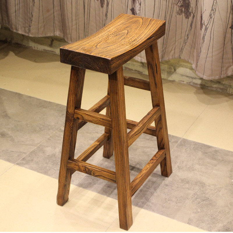 Old elm home bar stool solid wood Chinese high bar stool retro high bar stool bar log high stool retro