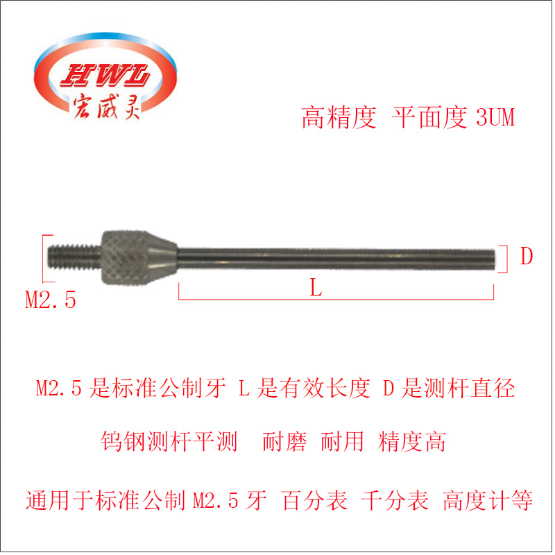 Dial indicator probe Dial indicator probe lengthened flat probe end face plane High-quality high-precision tungsten steel flat measurement