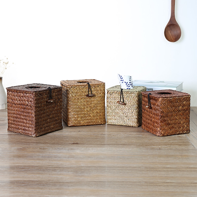 Seagrass handmade straw square tissue box living room tissue box toilet paper box tissue tube napkin set pastoral