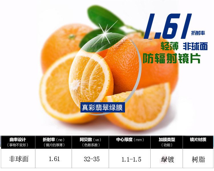 1 61 light and thin near eye lenses Green film aspherical mirror radiation-proof anti-ultraviolet light and thin clear through two slices of price