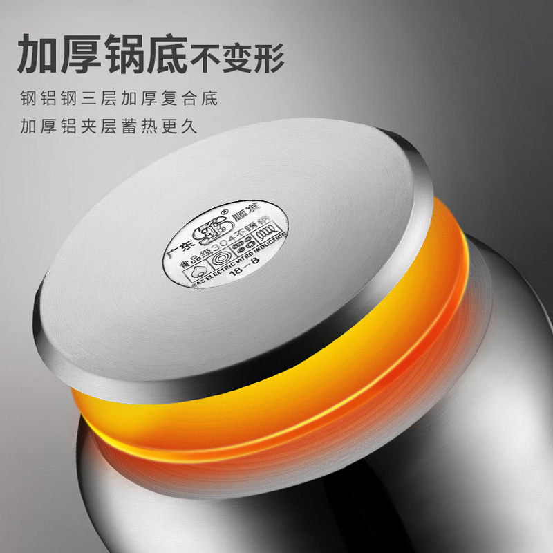 Shunfa kitchen bulky pan 22cm deep soup milk pan without coating composite bottom 304 stainless steel induction cookers gas