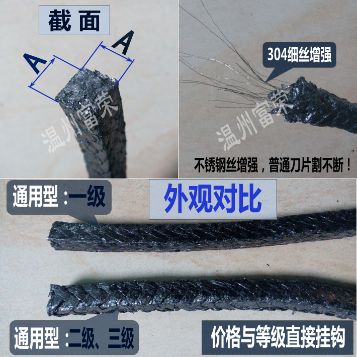 High pressure graphite packing 3 * 34 * 45 * 56 * 67 * 78 * 8 Pump valve sealing graphite rope high temperature padding