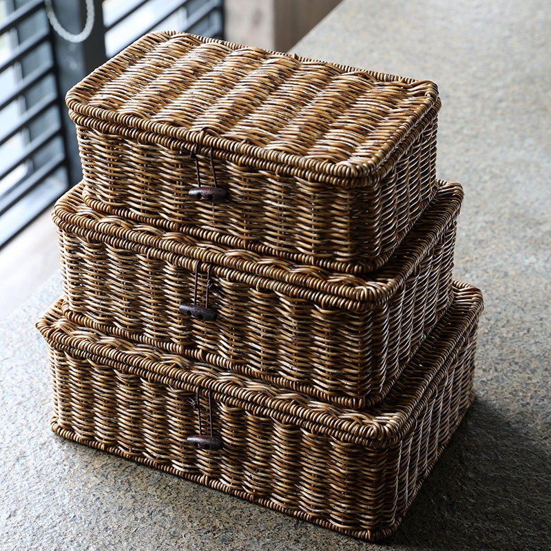 Storage basket straw rattan storage box desktop sundries with lid storage box storage box woven Japanese snacks