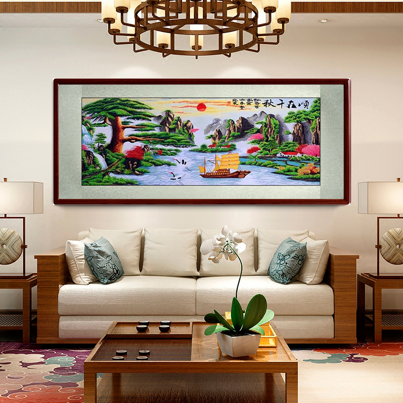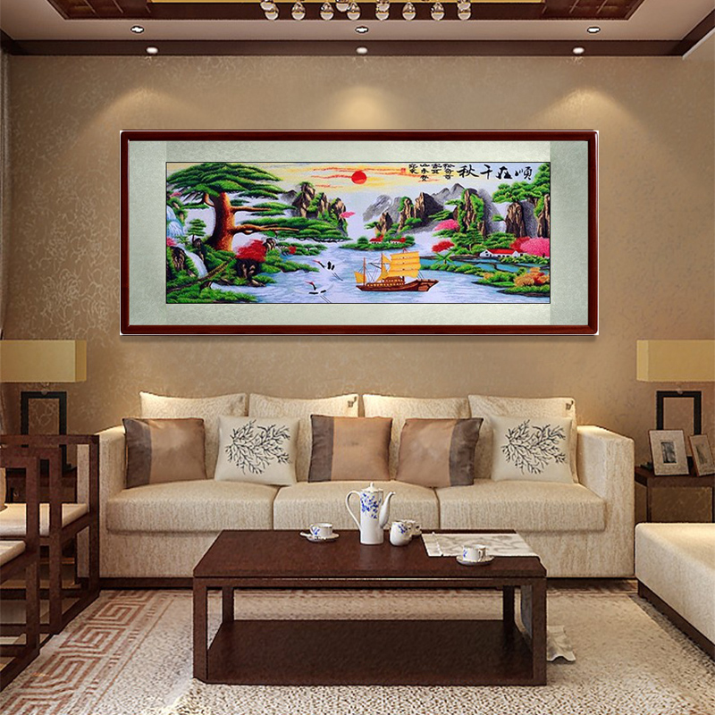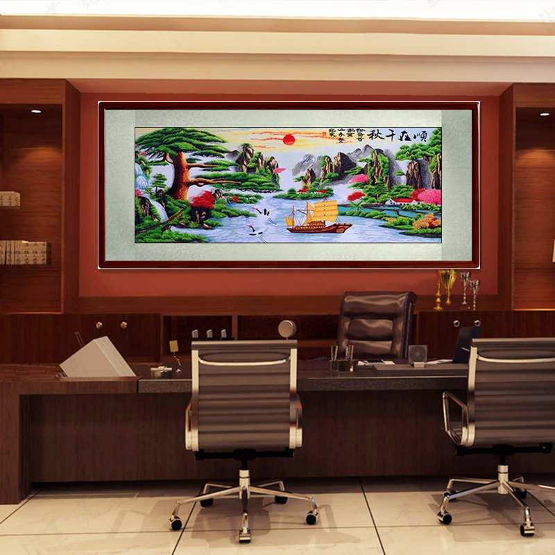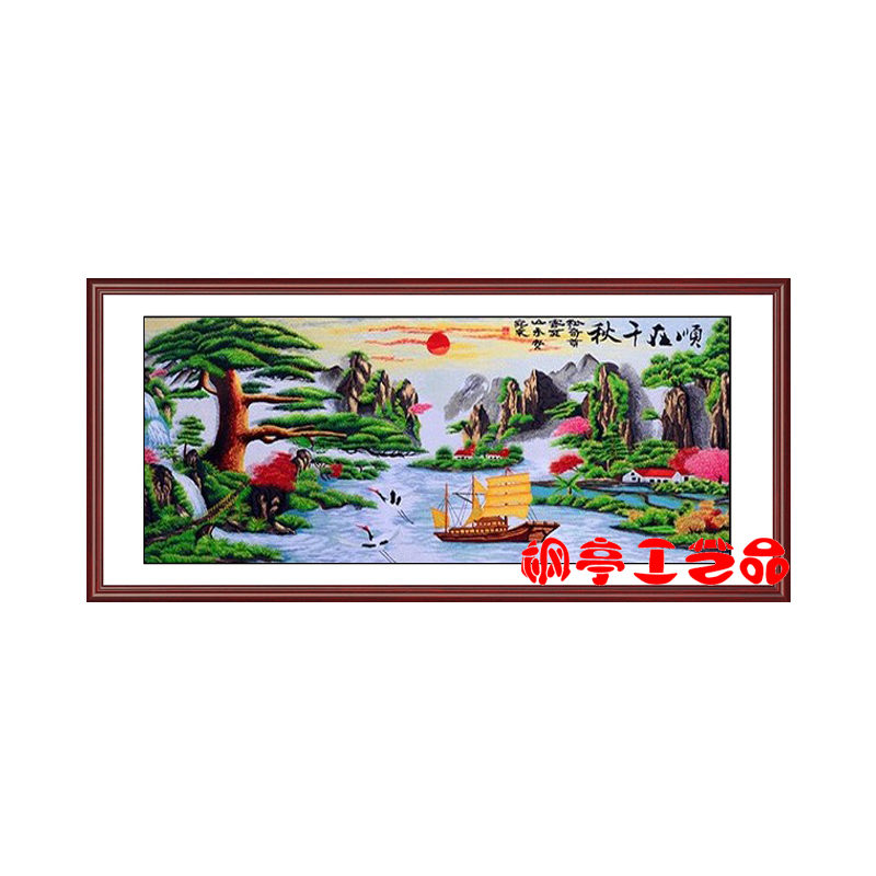 New Heat Pin Su Embroidered Finished Living Room Painting Embroidery Handmade Chinese Famous Painting Shun in Qiuqiu Welcoming Pine Polyppot