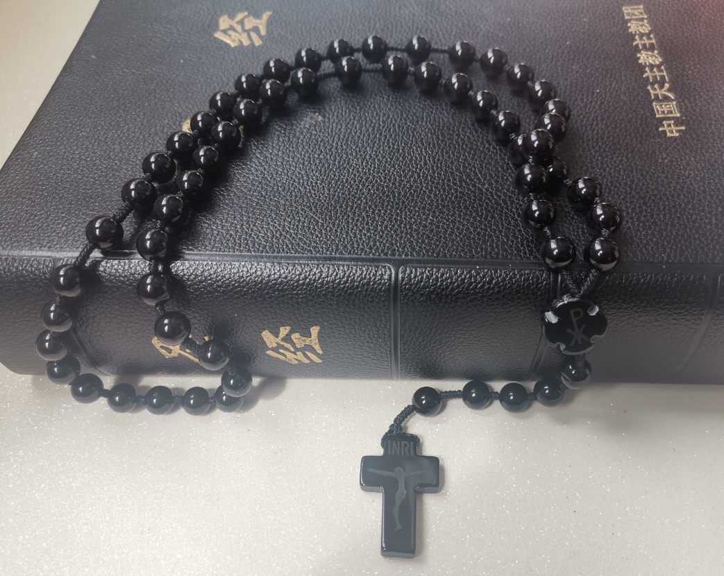 Boutique A grade natural red black and white green color agate crucifixion necklace pendant rose through long candied beads