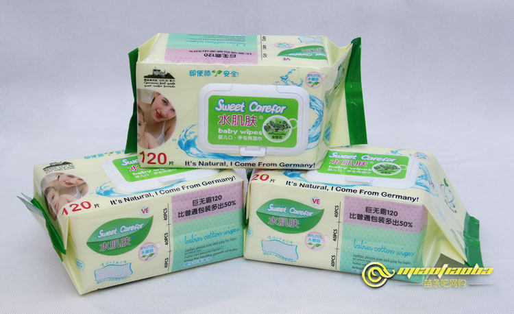 Water skin baby wet wipes 120 pieces 3 packs with cover baby hand opening special xylitol baby soft and wet wipes