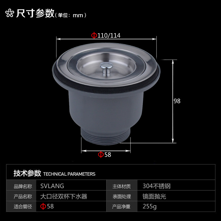Promotion 58 screw drool sink sink kitchen sink 304 stainless steel cage slag downwater 110 114