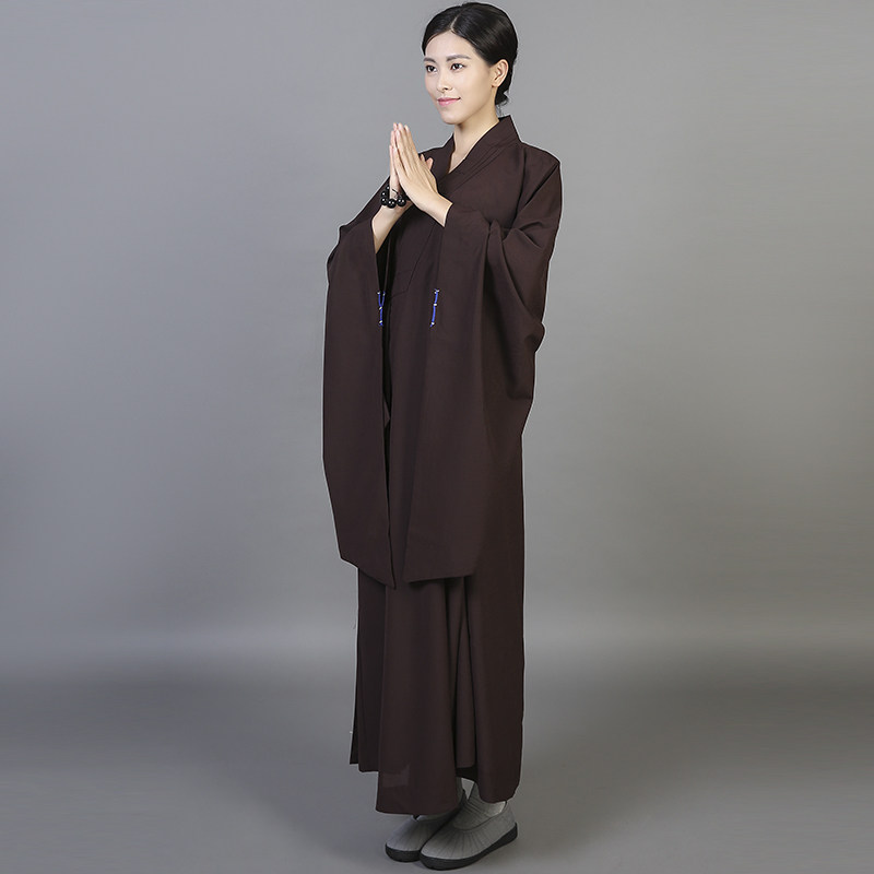 Tai Ma yarn opaque sea green resident dress men and women sea Qing monk clothes coffee black Buddhist supplies